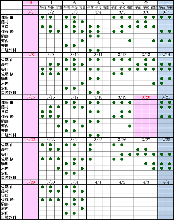 無料低額診療事業 無料低額診療事業は、生計困難な方が、経済的な理由によって必要な医療を受ける機会を制限されないように、無料または低額で医療をうけられる制度です。 新着情報 2026年3月2日 NEW! 3月の診察スケジュールを更新しました。 2026年1月30日 2月の診察スケジュールを更新しました。 2026年1月7日 診察スケジュールを更新しました。 2026年1月1日 新年のご挨拶 2026 2025年11月28日 診察スケジュールを更新しました。 2025年10月31日 診察スケジュールを更新しました。 2025年9月29日 診察スケジュールを更新しました。 2025年8月29日 診察スケジュールを更新しました。 2025年7月16日 【お仕事体験の参加募集】お仕事体験 in 古川民主病院歯科のお知らせ 2025年7月14日 【講演会のご案内】「子どもの口からみえる、子どもがおかれている環境」 〜子どものむし歯予防がもたらすもの〜(9月21日開催) 休日救急歯科診療について 大崎歯科医師会の大崎口腔保健センターにて対応しております。 大崎歯科医師会のホームページはこちら>> 院内掲示について 施設規準の届出について>> 総義歯治療の皆様へ>> 居宅療養管理指導の重要事項>> – 診療時間 – – 診療スケジュール – ※画像をクリックすると、詳細をみることができます。 ドクターとスタッフブログ 歯科のご案内 医師・スタッフのご紹介 設備 施設案内 アクセス はじめての方へ 診療手順 診療科目 一般診療・小児歯科 有病者治療 矯正 在宅往診 口腔外科 インプラント 歯科医師臨床研修 歯科医師臨床研修 リクルート 私たちの職場 歯科衛生士からのメッセージ FAQ 募集要項 関心がある方は、求人募集の特設サイトに詳しく記載しています。ご覧ください。 リンク